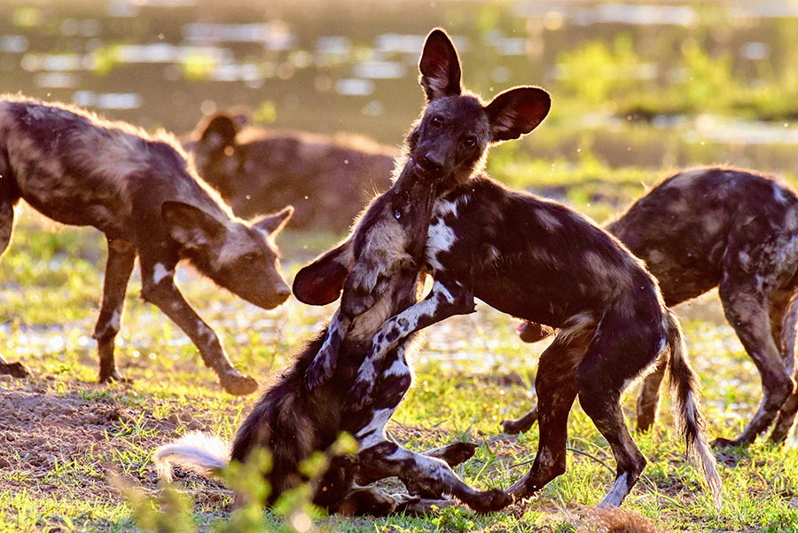 I was lucky to journey into this pristine wilderness with my father and it was nothing short of extraordinary, marked by many unforgettable encounters. One such highlight was the opportunity to photograph wild dogs with two professional photographers and the BBC crew as they captured footage for their acclaimed docuseries, “Dynasties,” featuring the painted wolves. Witnessing these elusive creatures—and their intricate social dynamics and unwavering dedication to the pack—in their natural habitat while we were on foot was a privilege beyond compare. While the camera lens immortalized their captivating presence, it was the raw emotion and untamed spirit of the painted wolves that left an indelible mark on my soul. These up-close-and-personal experiences led me to fall in love with painted dogs and serve as trustee on the Painted Wolf Foundation for three years. During this time, we established it as an umbrella organization to support wild dog conservation groups throughout Africa.