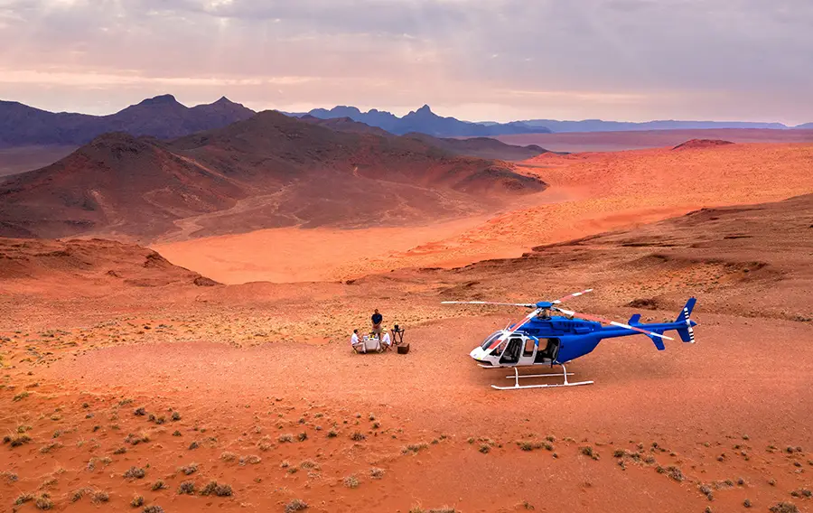 A helicopter safari peels back the layers of a landscape, revealing hidden canyons, secret valleys, salt pans that stretch to infinity, or the zigzag pulse of river systems unseen from the ground. From Namibia’s Skeleton Coast to Patagonia’s jagged steppe, taking to the skies by helicopter offers an entirely different kind of adventure.