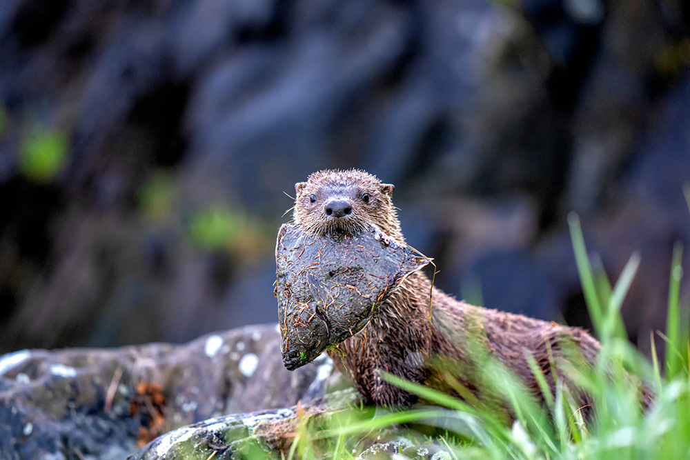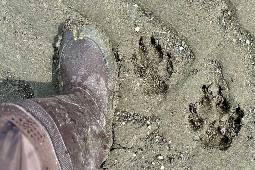 My third surprising wildlife encounter in Kenai Fjords occurred the following morning after waking up early for another solo exploration. I witnessed four river otters swimming in the lagoon from afar and decided to see if I could get a closer look. When I sat down near where they had exited the lagoon, I was surprised by one of them coming over a rock about ten feet from where I was sitting. After posing, with a fish in its mouth, for a few photos, it ran back into the water and proceeded to call its hunting partners, who ran right by me back into the safety of the water.