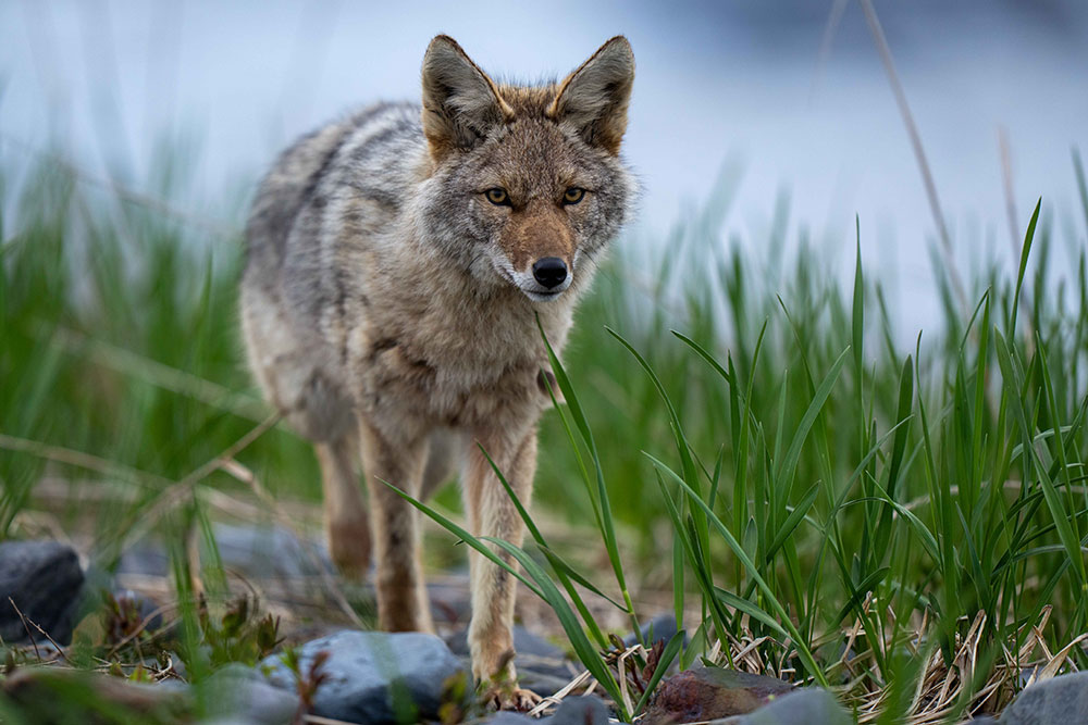 After the whales, I decided to walk further along the beach when I surprised a coyote that was hunting in the long grasses. She became very curios of what I was as I dropped to a knee to photograph her at eye level. When her investigation brought to within 15 feet of where I was kneeling, I decided it was close enough and politely let her know she was close enough.